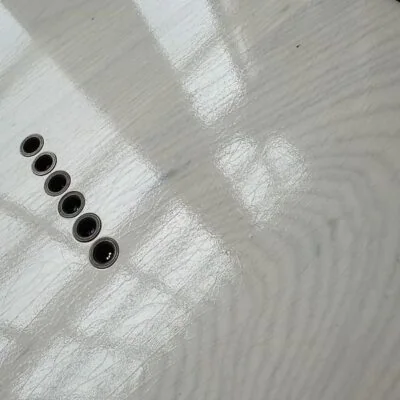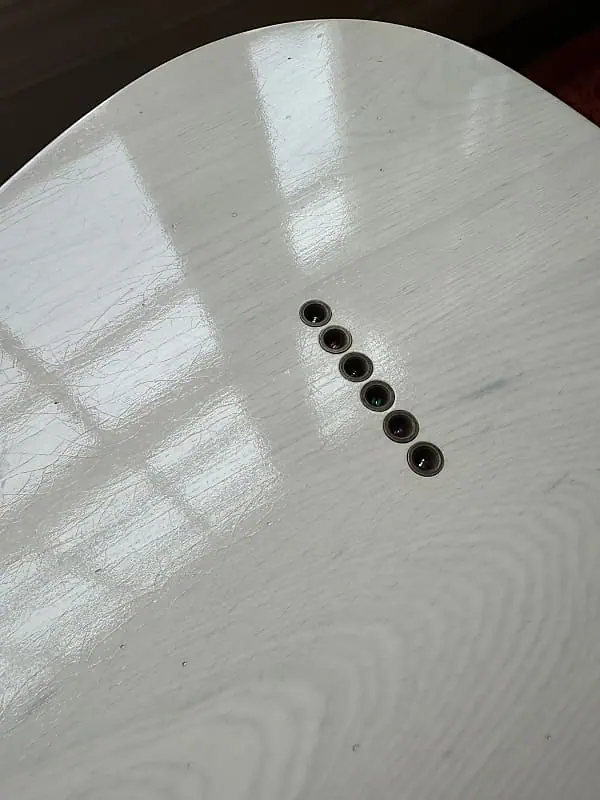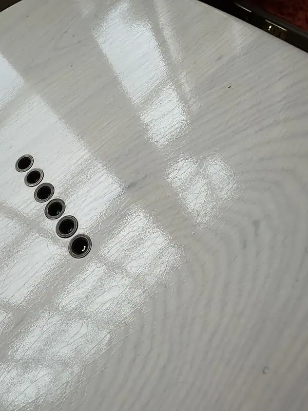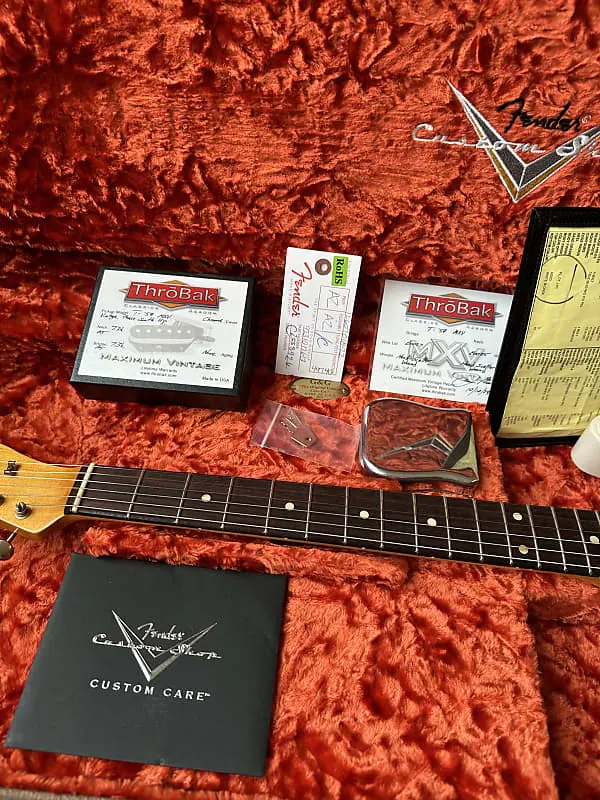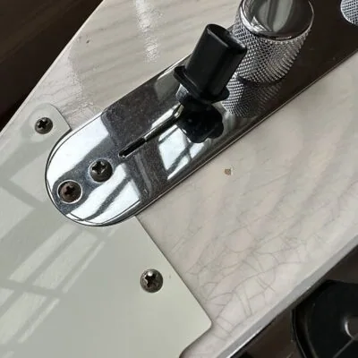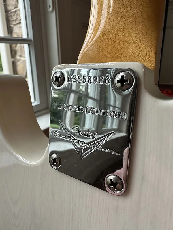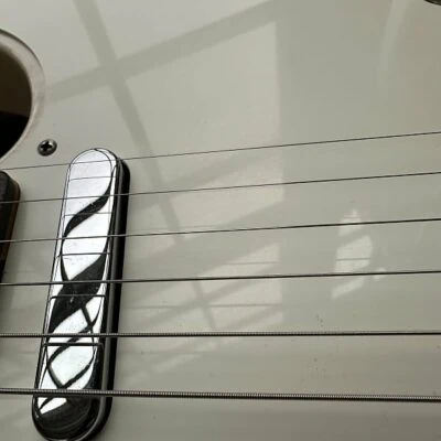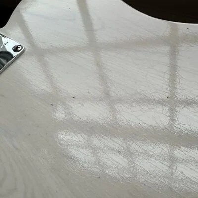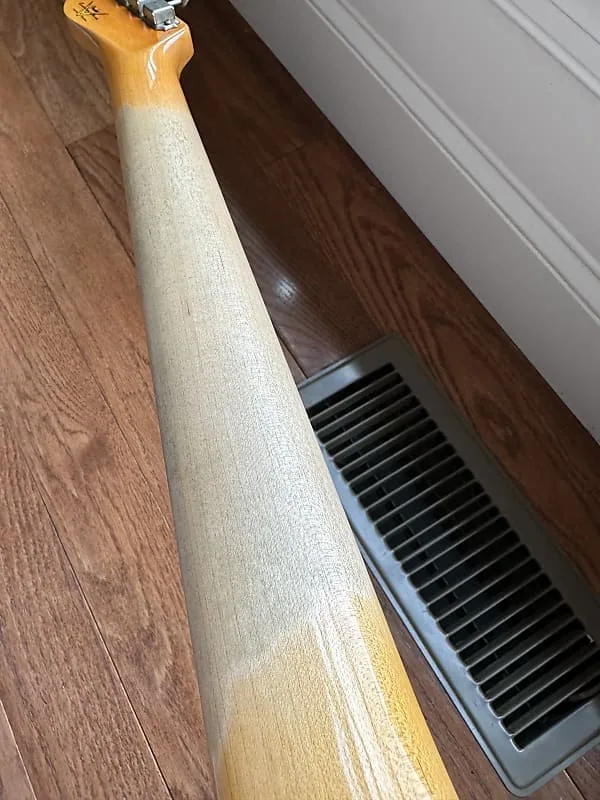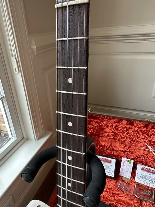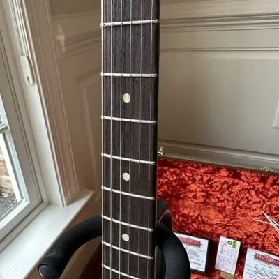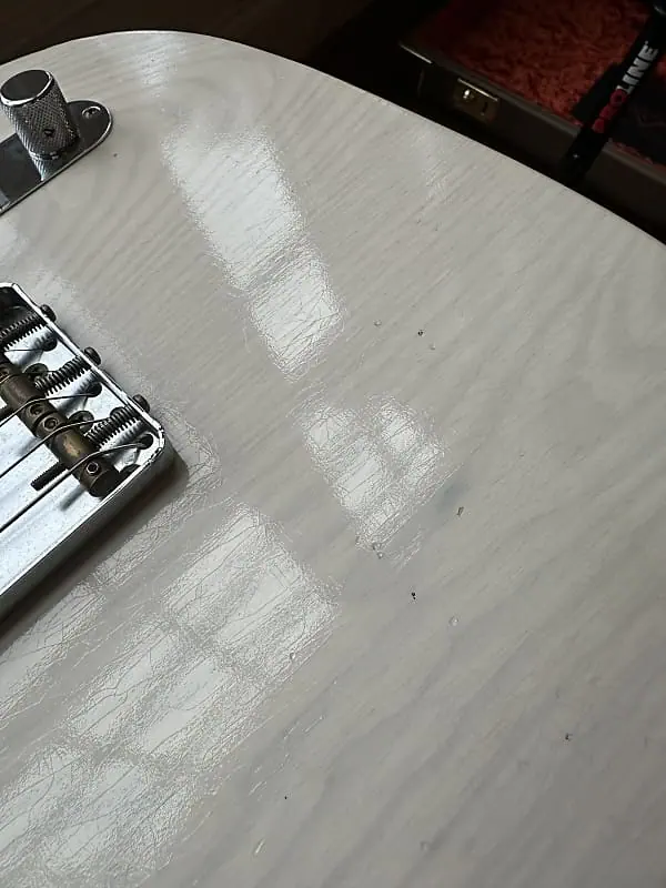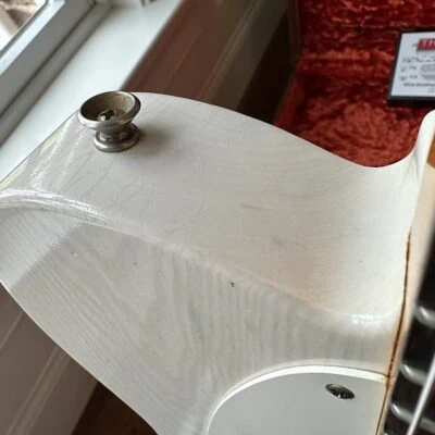Overall, the condition is excellent. The frets, fretboard, and neck are in great shape. The body is equally as impressive with light play wear. There is a small black mark near the strap button on the side of the body and a couple light marks on the front and back that likely are from the factory relic. Light pick marks on the pickguard.