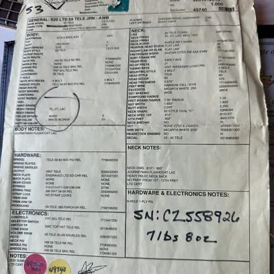 Weight is 7.5 lbs. Loaded with Throbak T-59 pickups. Originals not included. No other mods.