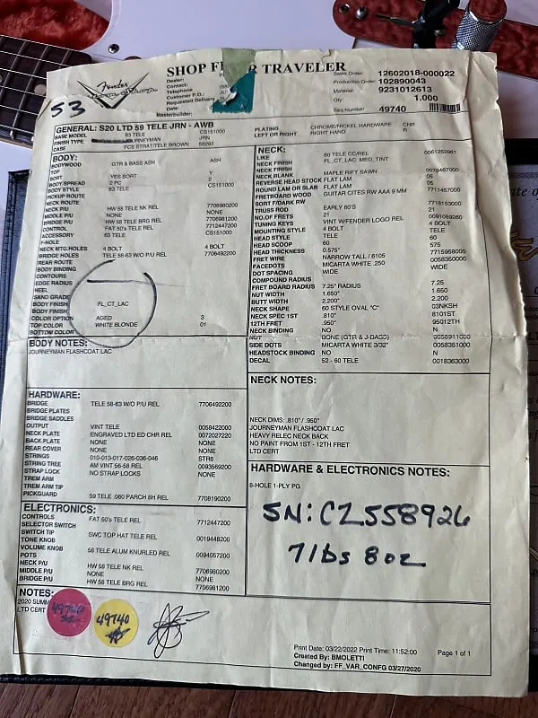 2022 Fender Custom Shop ‘59 Telecaster Journeymen Relic – Aged White Blonde
