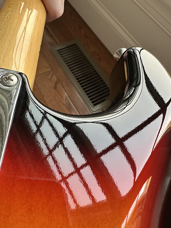 Overall, the condition is excellent and very close to mint. The frets, fretboard, and neck are in fantastic shape. Some extremely faint scratches on the body in the darker finish spots. Hardly noticeable.